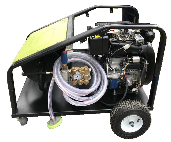 高壓管道疏通清洗機用于疏通和清除管道中的嚴重堵塞物和污垢。高壓柱塞泵由柴油機驅(qū)動。利用高壓水射流產(chǎn)生的反作用力,帶動噴嘴帶動橡膠管在管路中向前運動,清除管路中的污垢。當噴水器到達管道的另一端時,橡膠管在卷盤張力的作用下被迫向后移動。此時,高壓水射流掃管壁,將管外雜物帶走,達到清洗管道的目的。