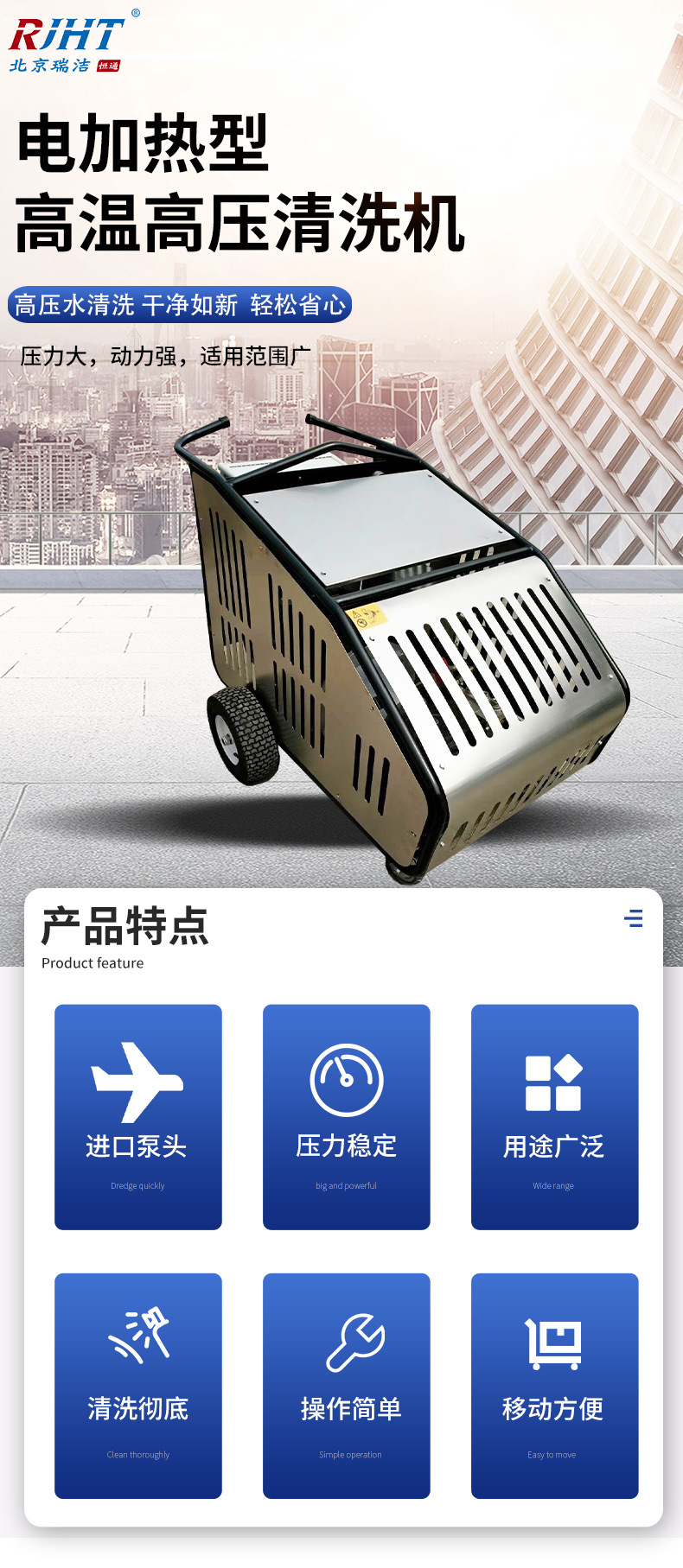 RJHT-3521型高壓清洗機,采用意大利進口高壓泵,壓力調(diào)節(jié)和安全控制閥,熱敏閥等多種安全防護裝置,具有安全性高,使用操作穩(wěn)定等優(yōu)點。