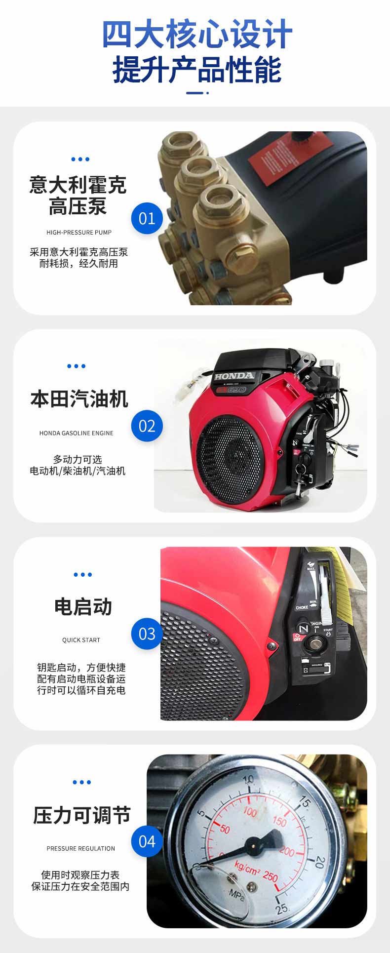 RJHT-680型 燃油款 高壓管道清洗機,采用意大利進口高壓泵、壓力調(diào)節(jié)裝置、不銹鋼壓力表和精密過濾器等多種安全防護裝置,具有安全性高,使用操作穩(wěn)定等優(yōu)點。