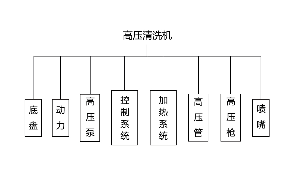 高壓清洗機組成部分:底盤-動力-高壓泵-控制系統(tǒng)-高壓管-高壓槍-噴嘴。
