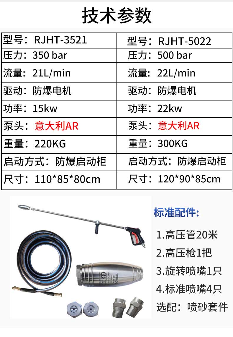 RJHT-3521型高壓清洗機,采用意大利進口高壓泵,壓力調(diào)節(jié)裝置、壓力表和過濾器等多種安全防護裝置,具有安全性高,使用操作穩(wěn)定等優(yōu)點。